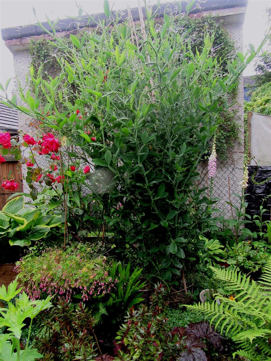 The Perennial Sweet Pea has grown to a huge size with all the rain,..they are greedy for water.