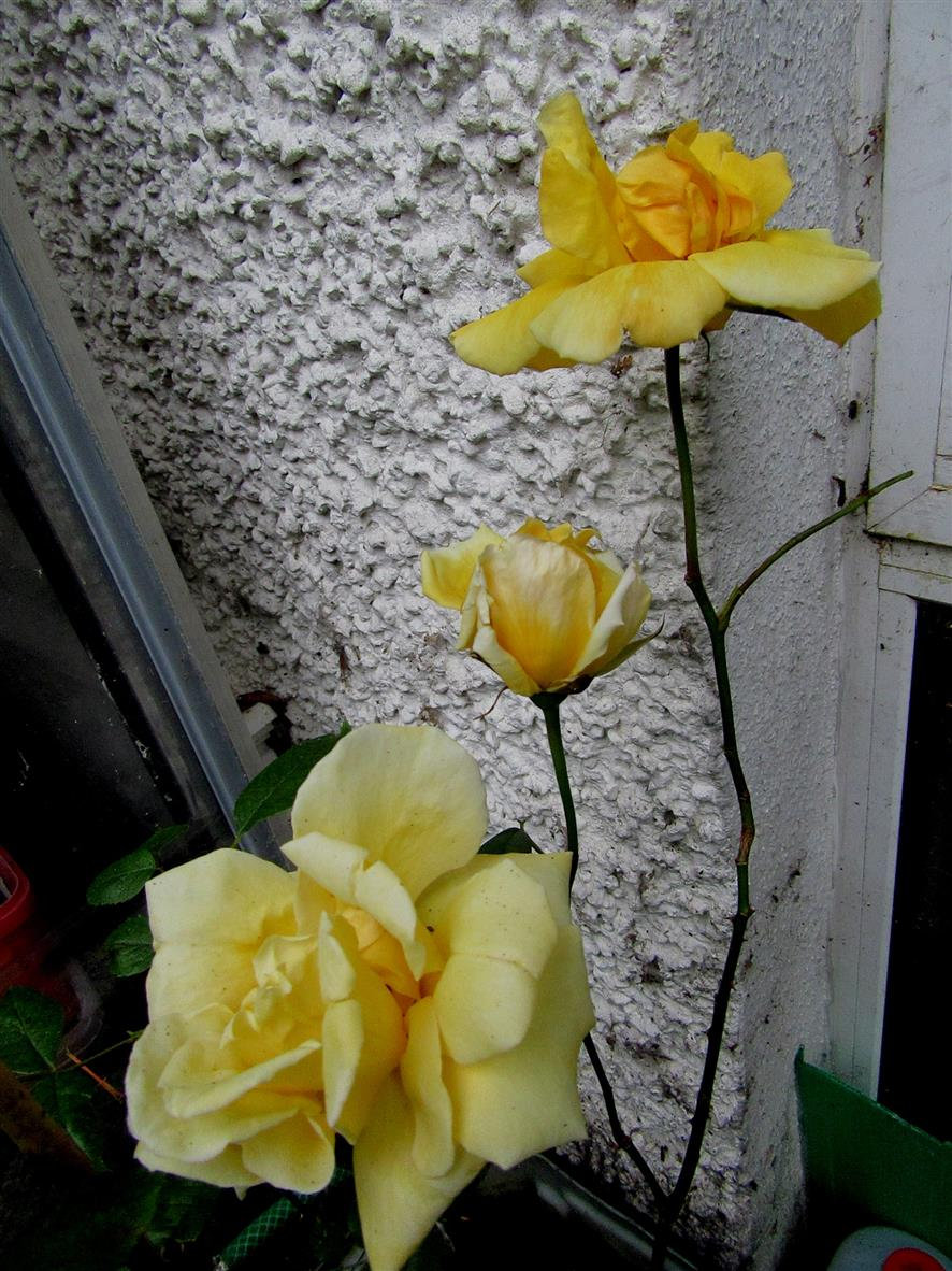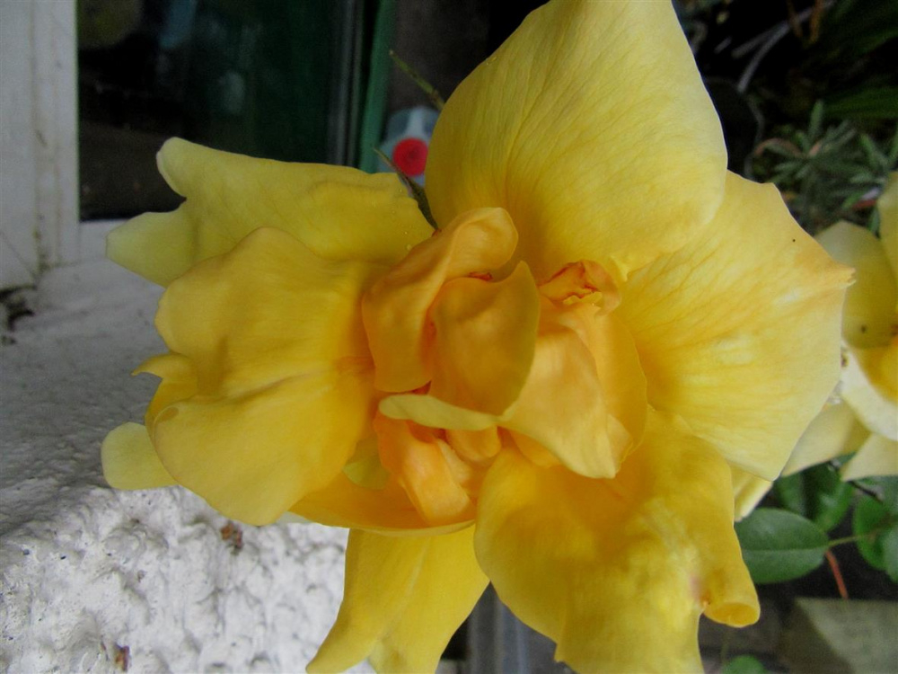 Looking at your yellow rose i am wondering is it scented?,..it looks like a rose i have,..Rose ( Rosa 'Korresia' ) it starts off with the bud being more red than yellow and just before it reaches full bloom its only then it loses its red colouring and becomes fully yellow.