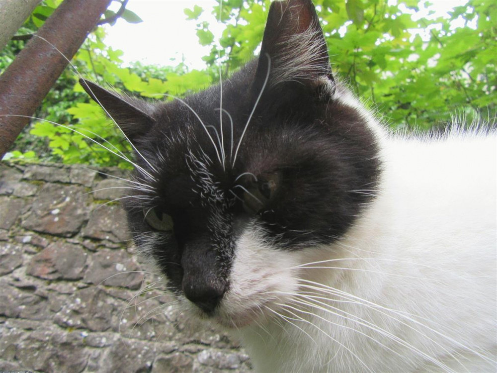Grumpy ''Whisper'' hates the rain and remained close to the back door where its sheltered by an overhanging ledge,..she managed to change positions today to the end of the garden but didn't look very happy.