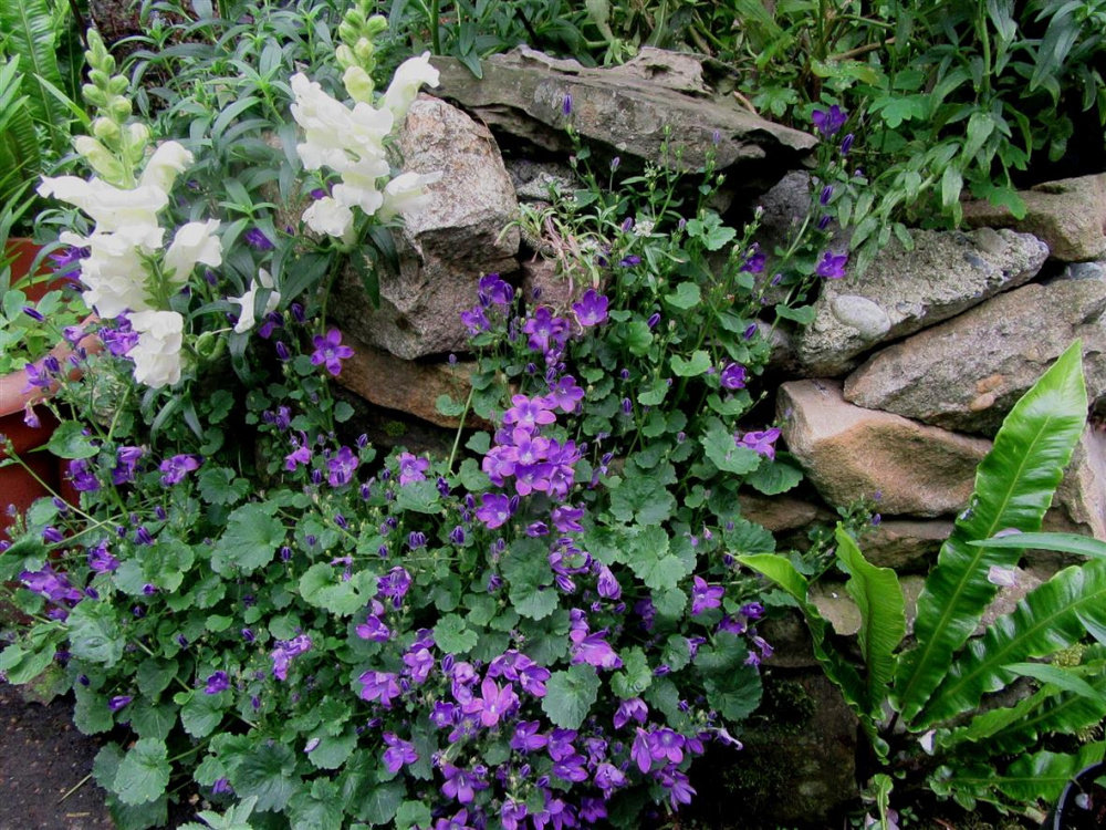 The small area by the wall would be ideal to begin Geraniums,..i could send you some hardy Geranium x magnificum 'Purple Cranesbill' if i can find some that are not presently in flower,..i could take some cuttings from the Pelargoniums and as soon as they arrive you would need to have something prepared for them,..well water for a spell then into soil,..what do you think,..or perhaps i should root them them prior to sending them though it will take time?.