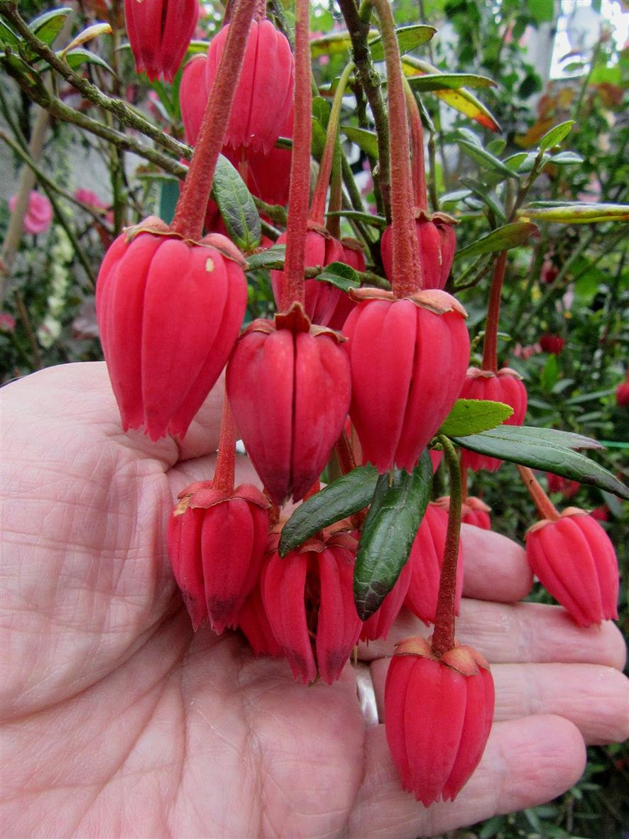Chilean Lantern Tree 'Crinodendron hookerianum' its Lanterns below.