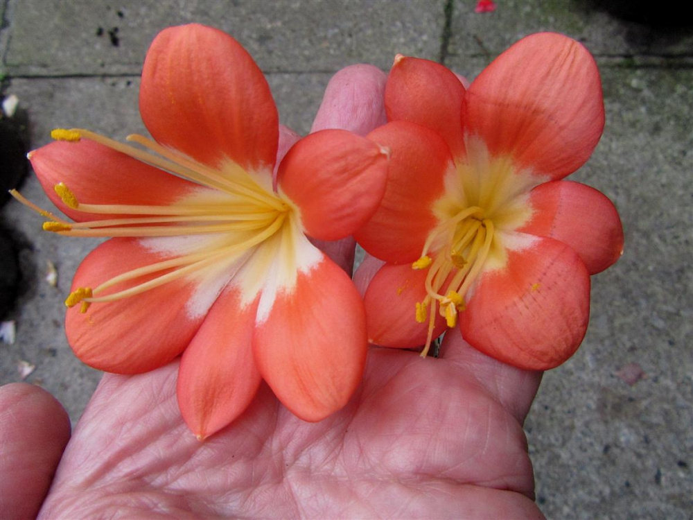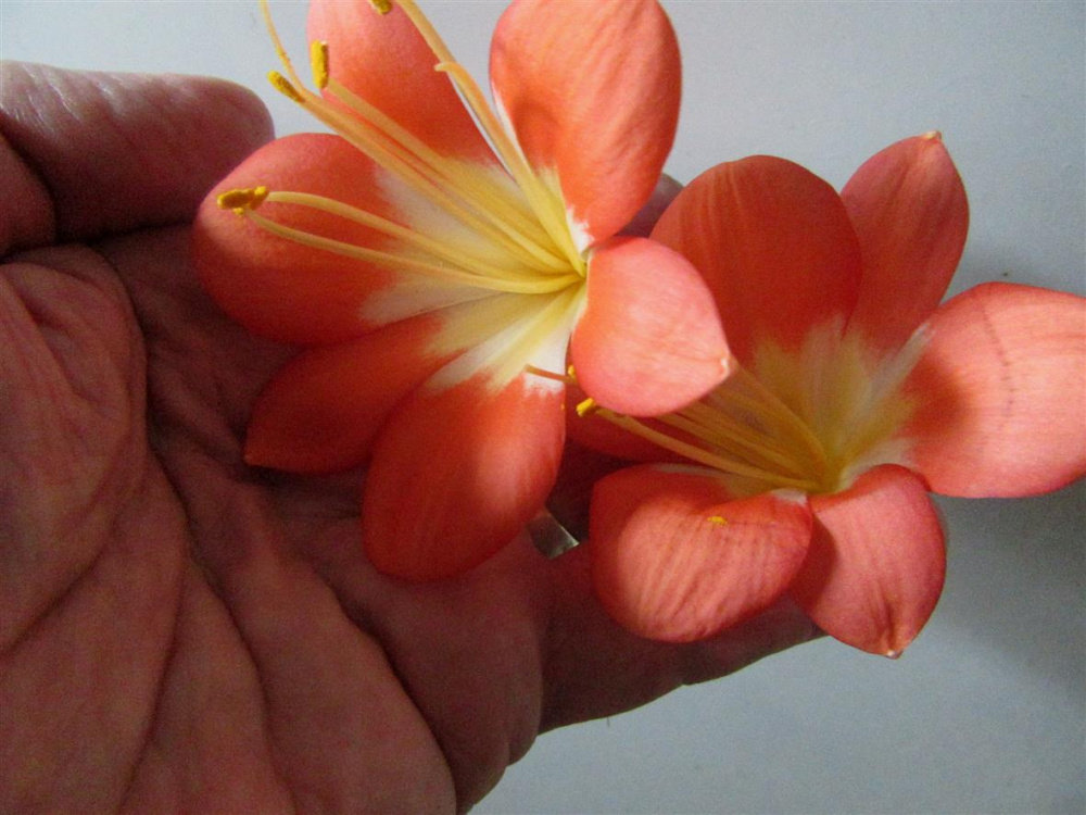 Some of the ''Clivia'' blooms fell off today,..so you can see the actual size of the bloom below.