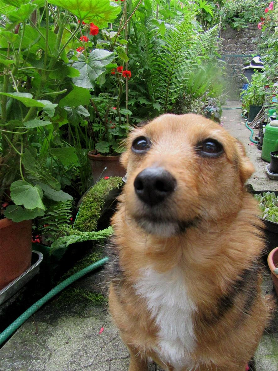 I know what you mean when it comes to doing something like cutting claws. When the cat last went to the vet I asked if they could do his but after his behaviour even they didn't attempt it! Foxy Molly doesn't have to be able to talk her expressions says it all. Maybe Whisper likes the fresh air even when its wet. Hard to believe that you show us the same parts of your garden but each time they look completely different.