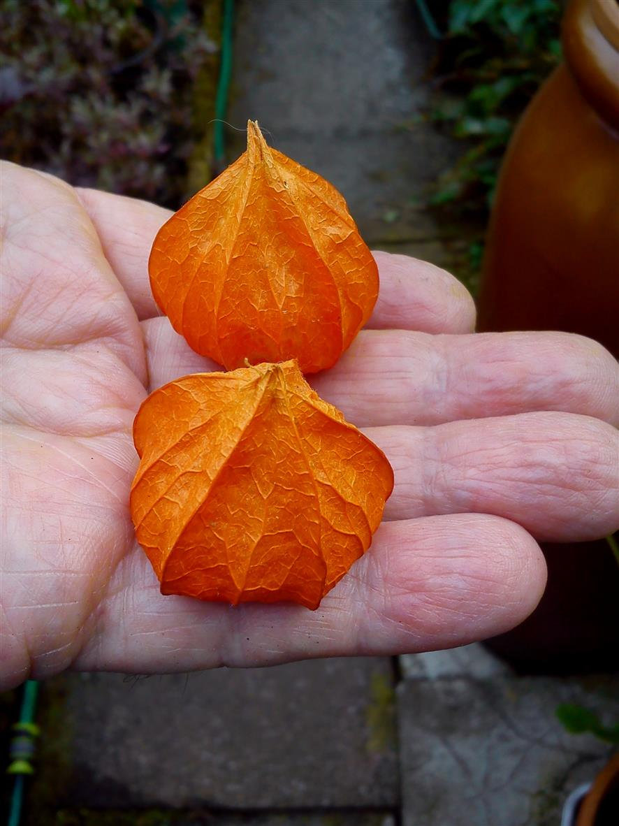 Pysalis franchetii 'Chinese lantern',..returns every year but i keep it from getting into the garden as its very invasive,..i really keep it for the Lanterns.