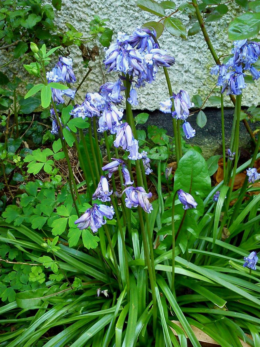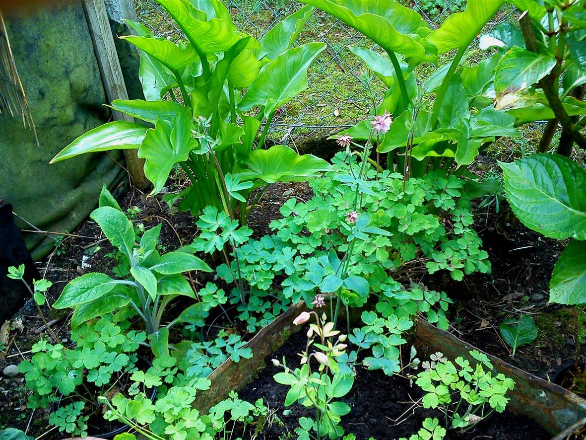 I gathered up a few of the Aquilegia which self seeded since last Summer and placed them as below,..there are just as many again all over the garden but not in the way so i let them be.