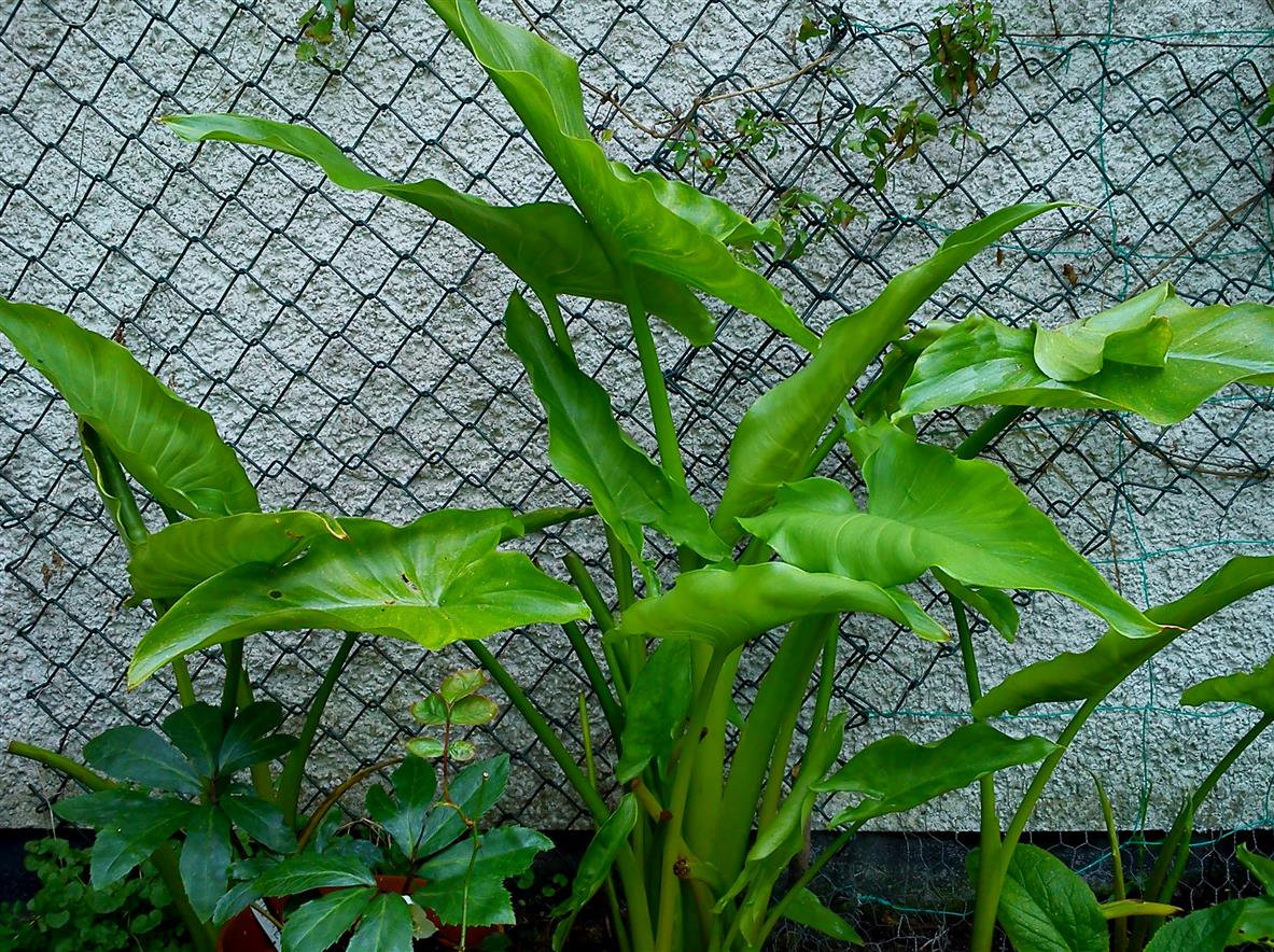 The big Arum that was thrashed due to the heavy gusts of wind has recovered,..with the help of some canes and lots of watering.