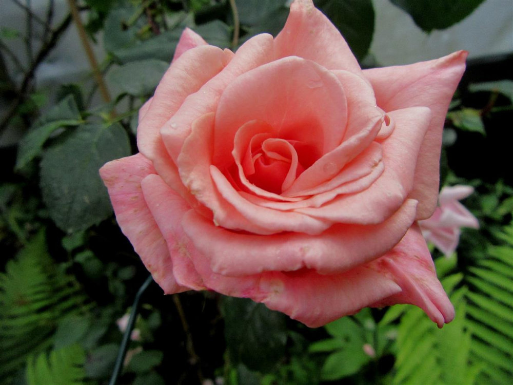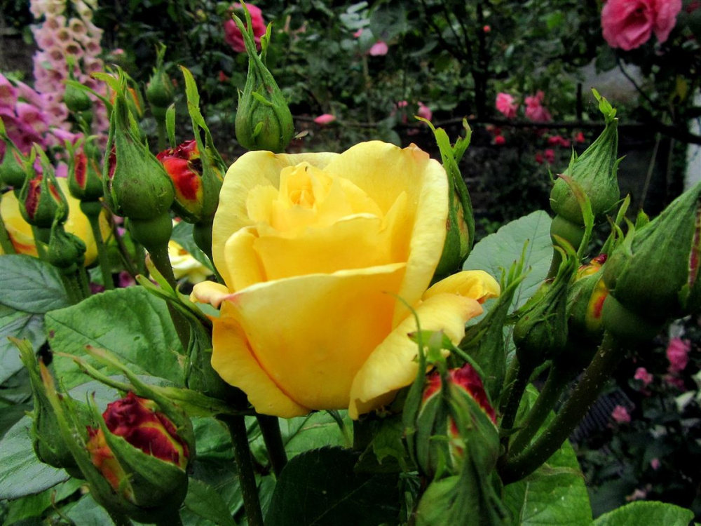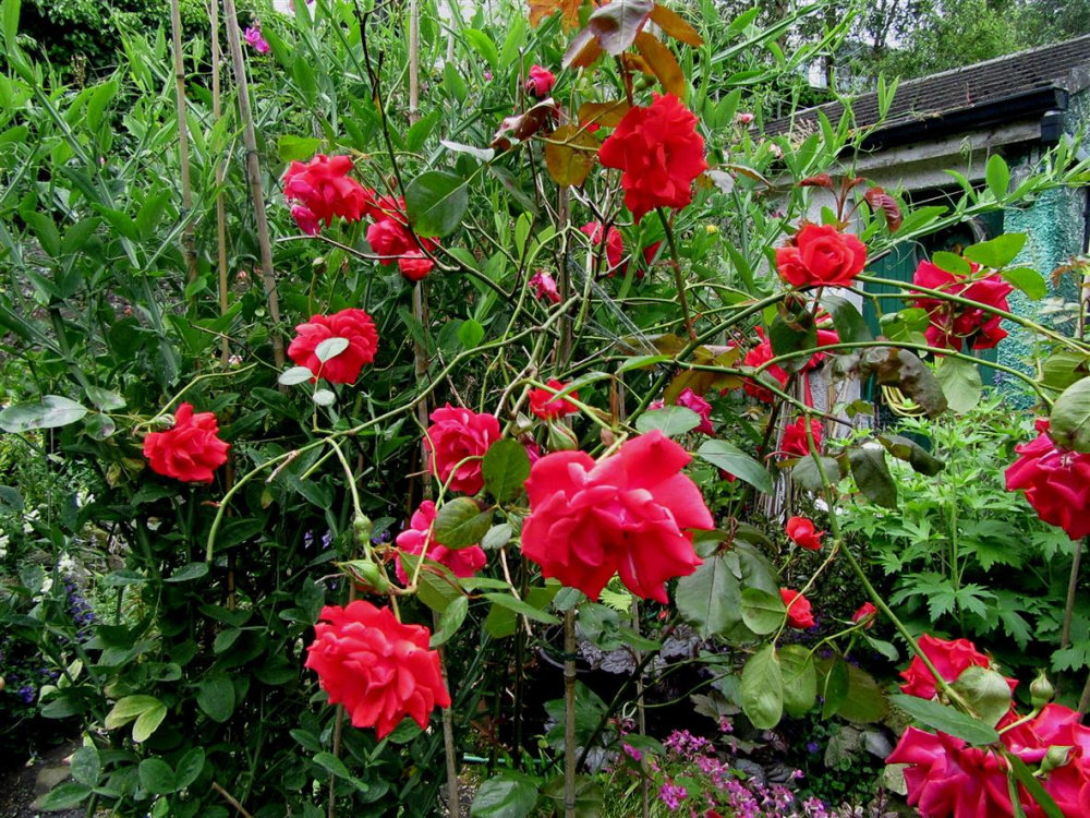 The Mystery Rose has travelled quite a bit and into the midst of the reds.