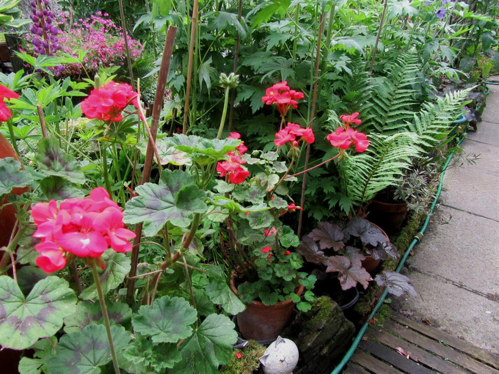 Pelargoniums,..are thriving as are my Lupine's,..i am watching to see has any new colours appeared due to cross pollination.