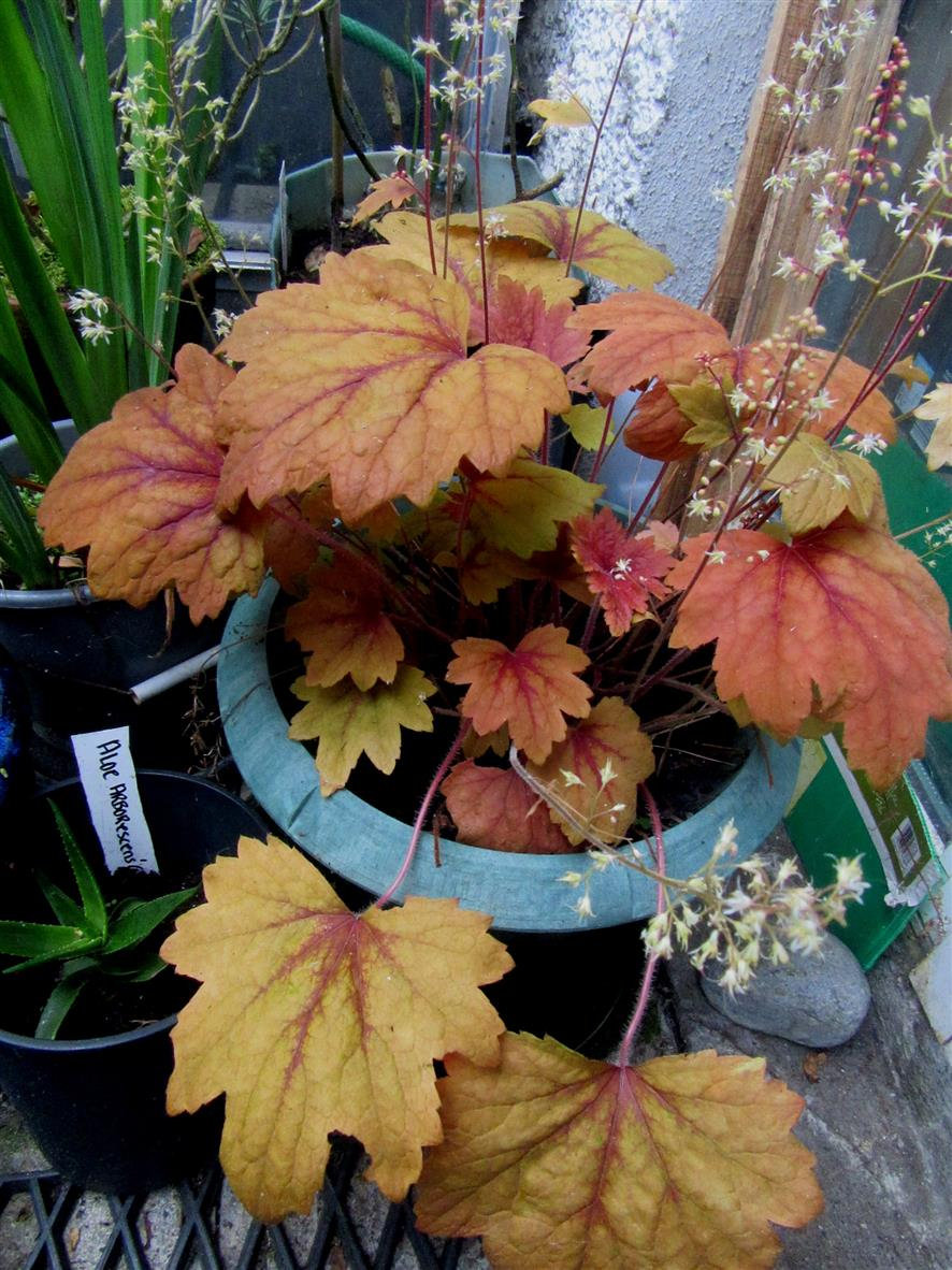 @nultyphilip224. Haven't had time to watch your rose video yet but will do later. Can imagine how frustrated you were with your computer problems. I can never remember my passwords when needed. Just glad I don't have to sift any more soil! Will remind my daughter to email the photos. Can't even remember what they were now! If you read the thread entitled "Mine's Massive - How Big is Yours (Foxglove) there are some tall ones but don't think any can best yours. You should put a photo in and declare yourself the winner! I have a couple of not very interesting sedums and notice they seem to take even if a piece has just dropped off. I shall now go back to the SGC website for Dragon's Blood but don't tell @AnniD. I think heucheras do just as well in a pot as in the ground.