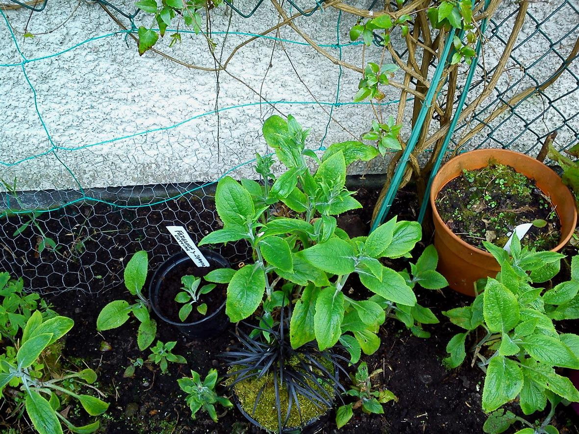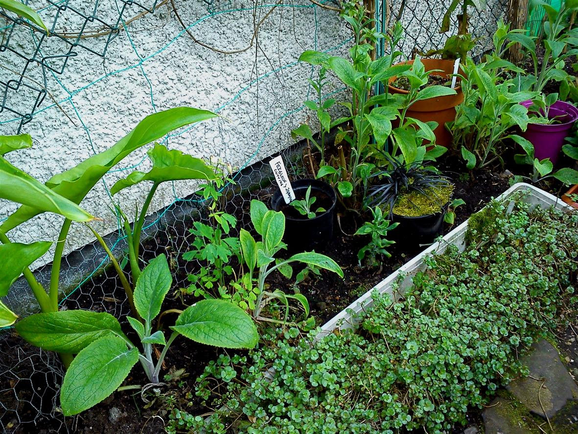 Unfortunately I'm still not feeling great,the neighbour with all the building rubble,did some tidying yesterday,including cutting off this big piece of black polythene,that hung over my garden,preventing me from doing any planting! Very difficult as we don't want to fall out with him. But at least now I can put back,what I dug up so he could build his wall! It was a clump of Salvia and a Verbena.