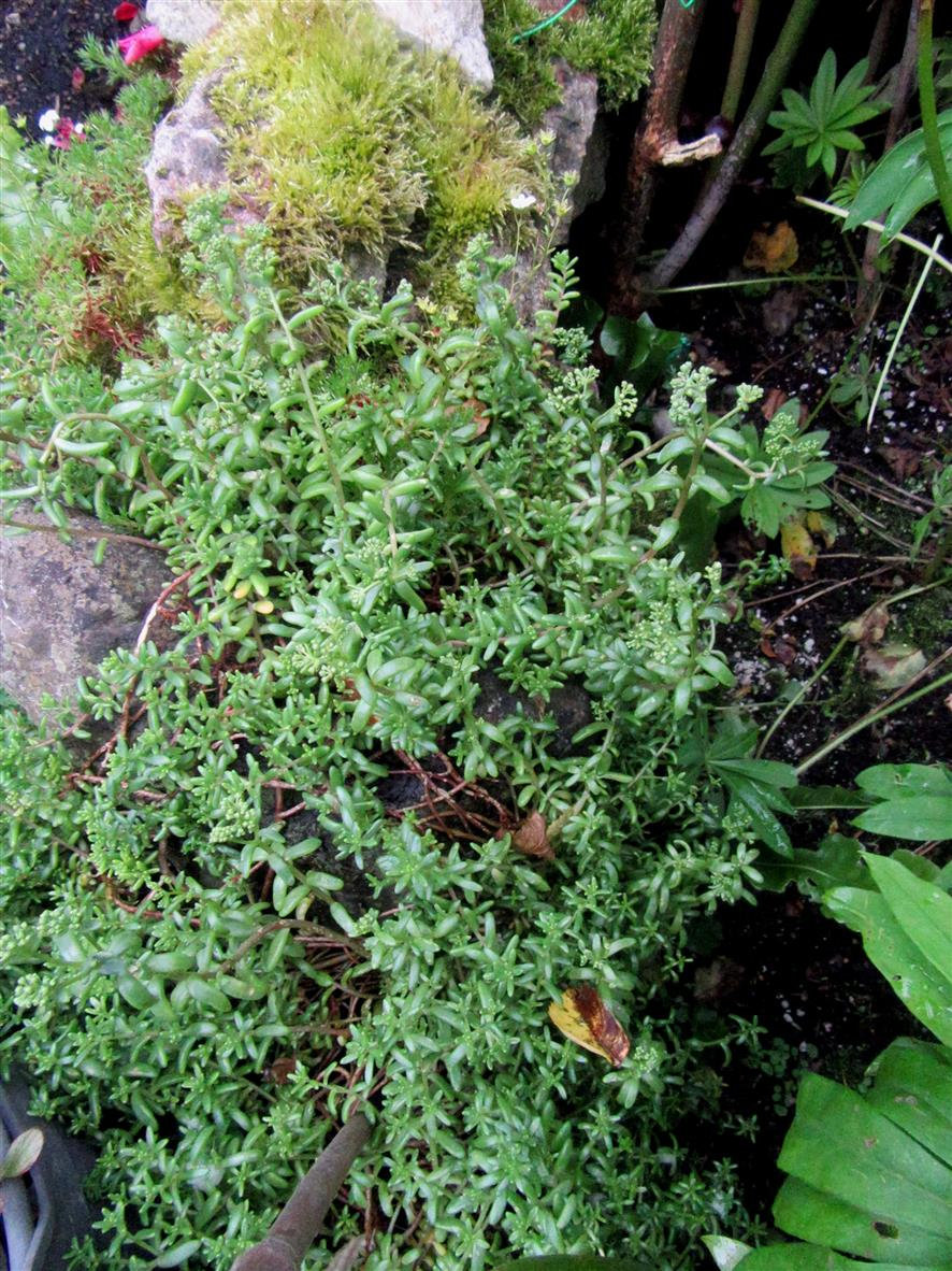 Sedum 'Green Ice',..just a sign of its white blooms on top right.