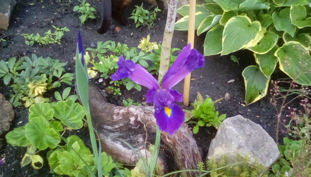 That blue flower you have looks to be an Iris,..very similar to one that @Purplerain has which was posted in this Thread not long ago.