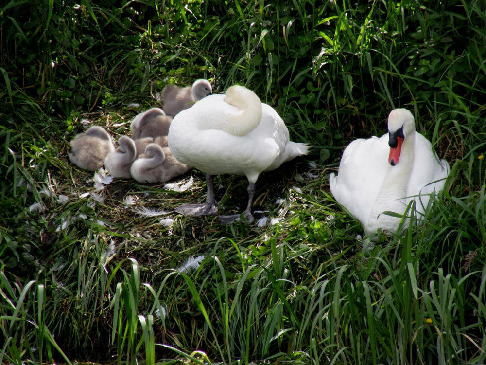 Oh heck! I'm the last one up,but now on third cup of coffee. @nultyphilip224. My goodness what deep grass,Foxy Molly has almost disappeared,bless her,but looks as though she's loving it. Good to see the swan family are all still together.