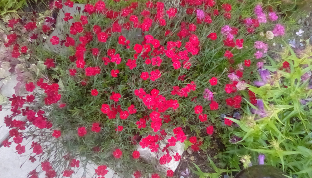 @ AnniD those ready meals are a godsend when you've been otherwise occupied all day,I don't blame you,there's more to life than cooking. Funnily enough I was just thinking today how pleased I was with my Dianthus,no idea what it's called,but it's ten times better than last year when it was planted,so a good buy for you I would say. OH has made a start on the lower terrace,to be stepped down then gravelled with slabs bedded in,with spaces between. It catches the afternoon sun. 2 tons of gravel to be distributed possibly sometime next week.......we're too old for this!