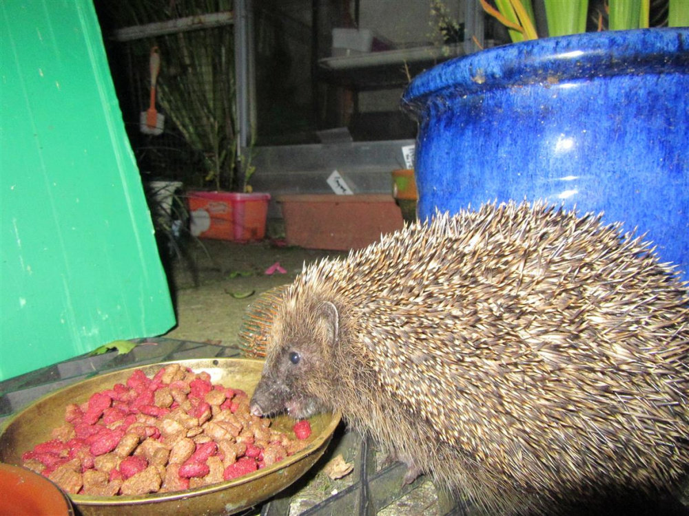 A wonderful close up of the hedgehogs face,these really are fantastic images,the one with his whole body over the food,priceless! I've only seen a live one two or three times,when we lived in a very rural area of Brittany. I expect there are some outside in the lane here,but our garden is very enclosed,with the gate near the ground,it's difficult if you need to keep cats in. I saw a baby squirrel yesterday,the first one I've seen in this area,he was crossing the road into Lidls.