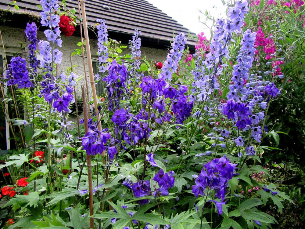 Despite the heavy rain and wind the canes held the Delphiniums in place.