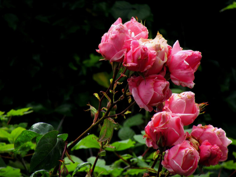 One VERY tall rose bush,..a No ID produces heavy roses that seldom manage to fully open.