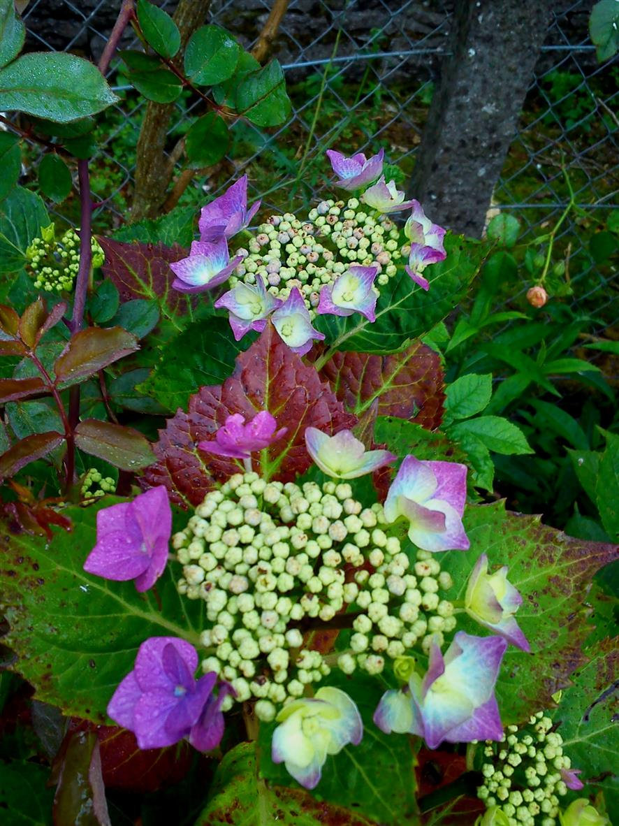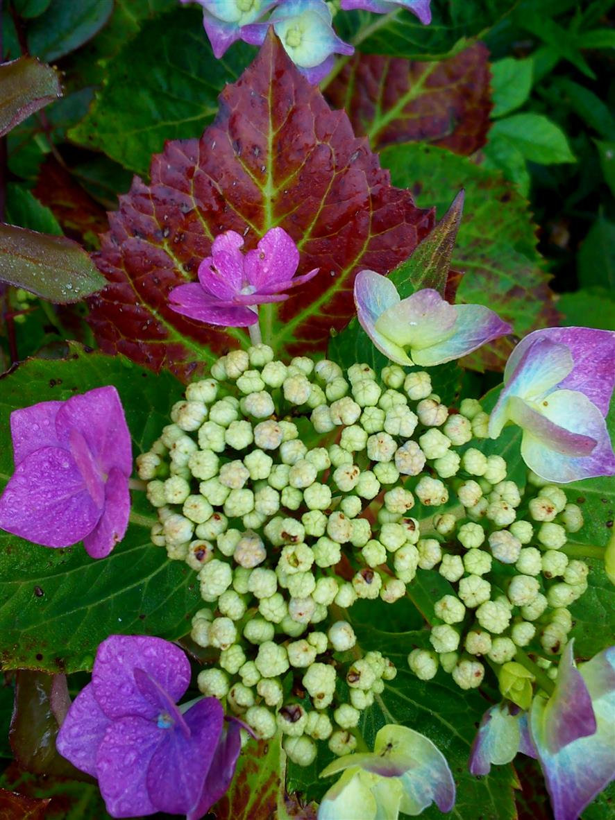 Yes its amazing how many different colours one can have from just two Hydrangea Bushes,..i would like your Hydrangea ''Dark Angel'',..though despite all the rain we get they demand lots of water which is my problem as they are in containers,..i might plant them in the garden after this Season.