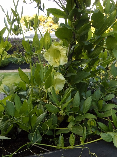 I bought some of the purple ones as seedlings earlier this year, and they are growing like mad here in the flower border in Lincs. Just spotted a few very tiny flower buds... Am finding them really interesting... those tendrils are so strong... I've got a kind of cat's cradle of them, between posts, that at about 5ft, aren't really tall enough for them...