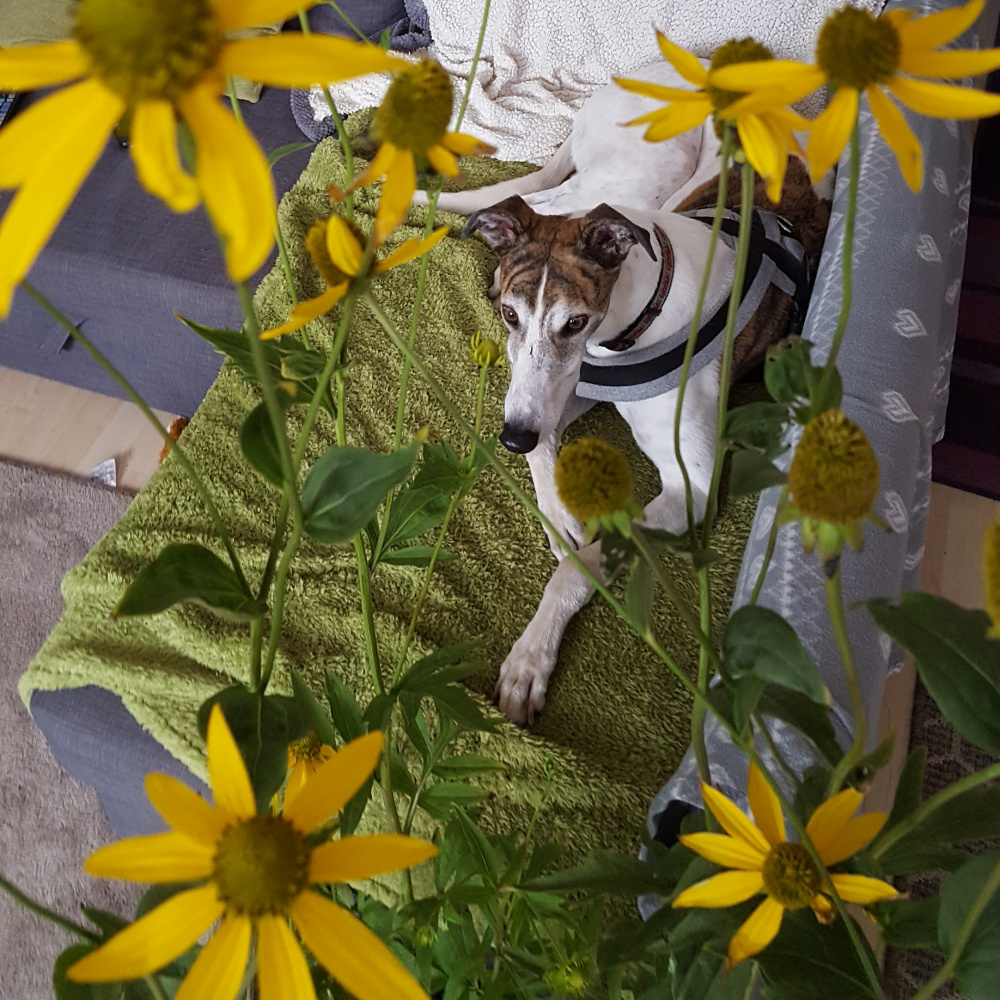 Well, oh deary me... what appears to have happened here? Cody knows from experience that whenever I take him on a garden visit, 2 or 3 days later the living room becomes invaded by giant plants....