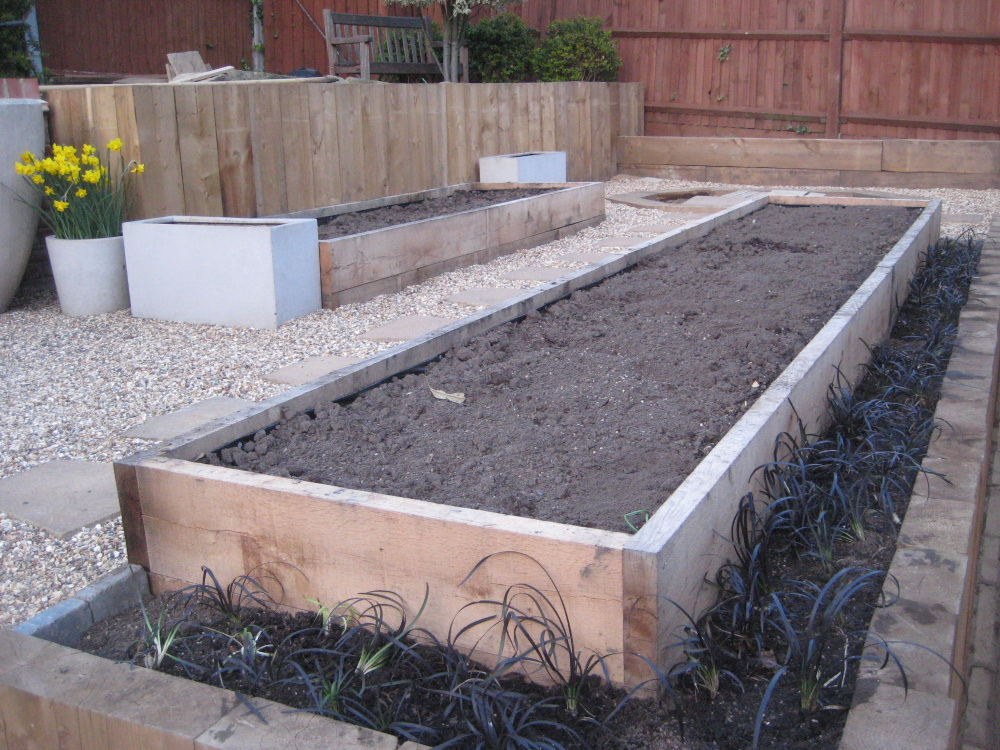 Be aware that if you use softwood sleepers you must drain them. Old school ones are covered with so many chemicals they hardly ever rot!