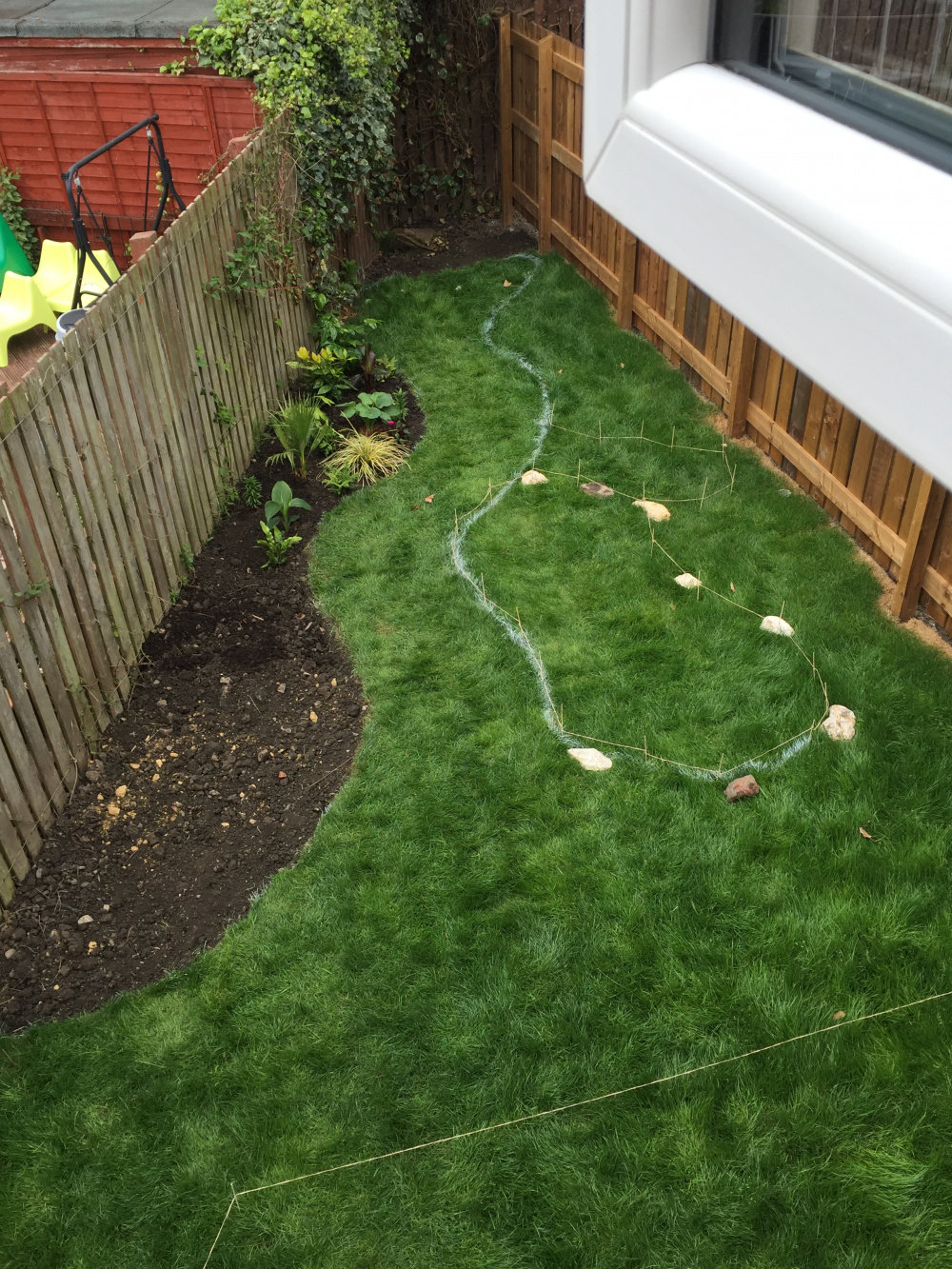 What do you honk of this for the pond layout? Slightly smaller than before. The line string at the bottom of the picture is where the decking will end from the house. In front of this will be more planting & posibly some plant screening at the edge of the deck to section it off