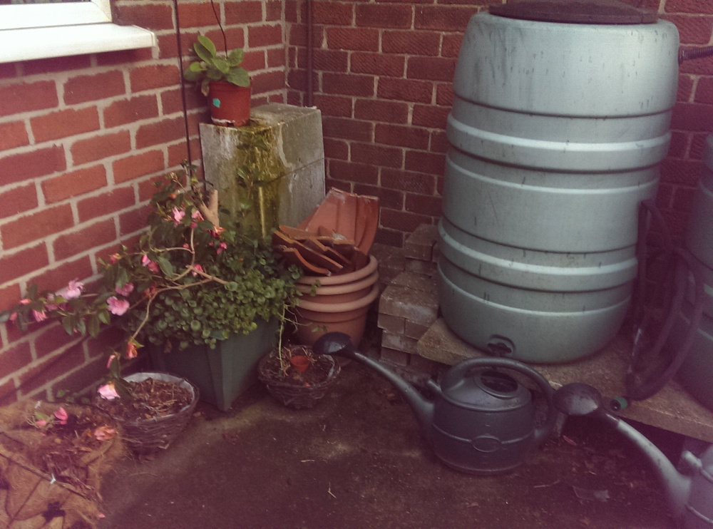 Another grotty corner (the camellia was going to be chucked but then it flowered......)