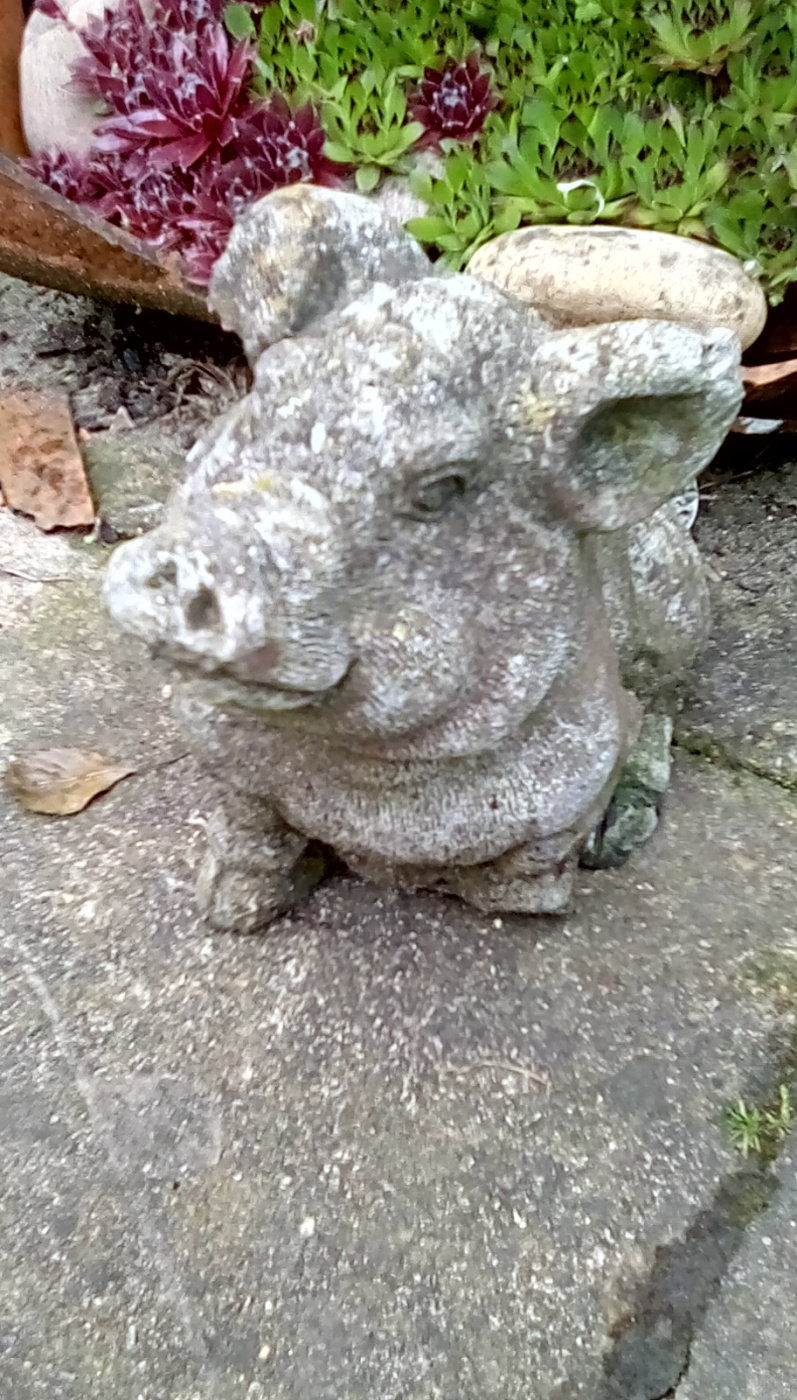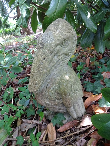 A belated addition to the forgotten stonework theme. He was left behind by the previous owners 22 years ago and has languished in the bushes ever since. I think he's missing the end of his beak but I'm not sure.