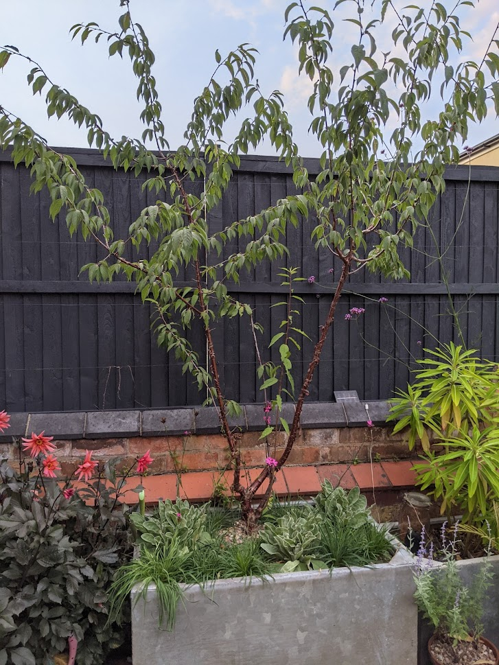 The planter gets really hot but the tree seems OK with it (it does live in tough environments in the wild). I have never noticed the plants struggle with drought. I didn't want to fill the entire planter with soil, because topsoil can become compacted and aerobic if laid too deeply, which is why I started off filling with sharp sand and then topsoil for the final 400mm.