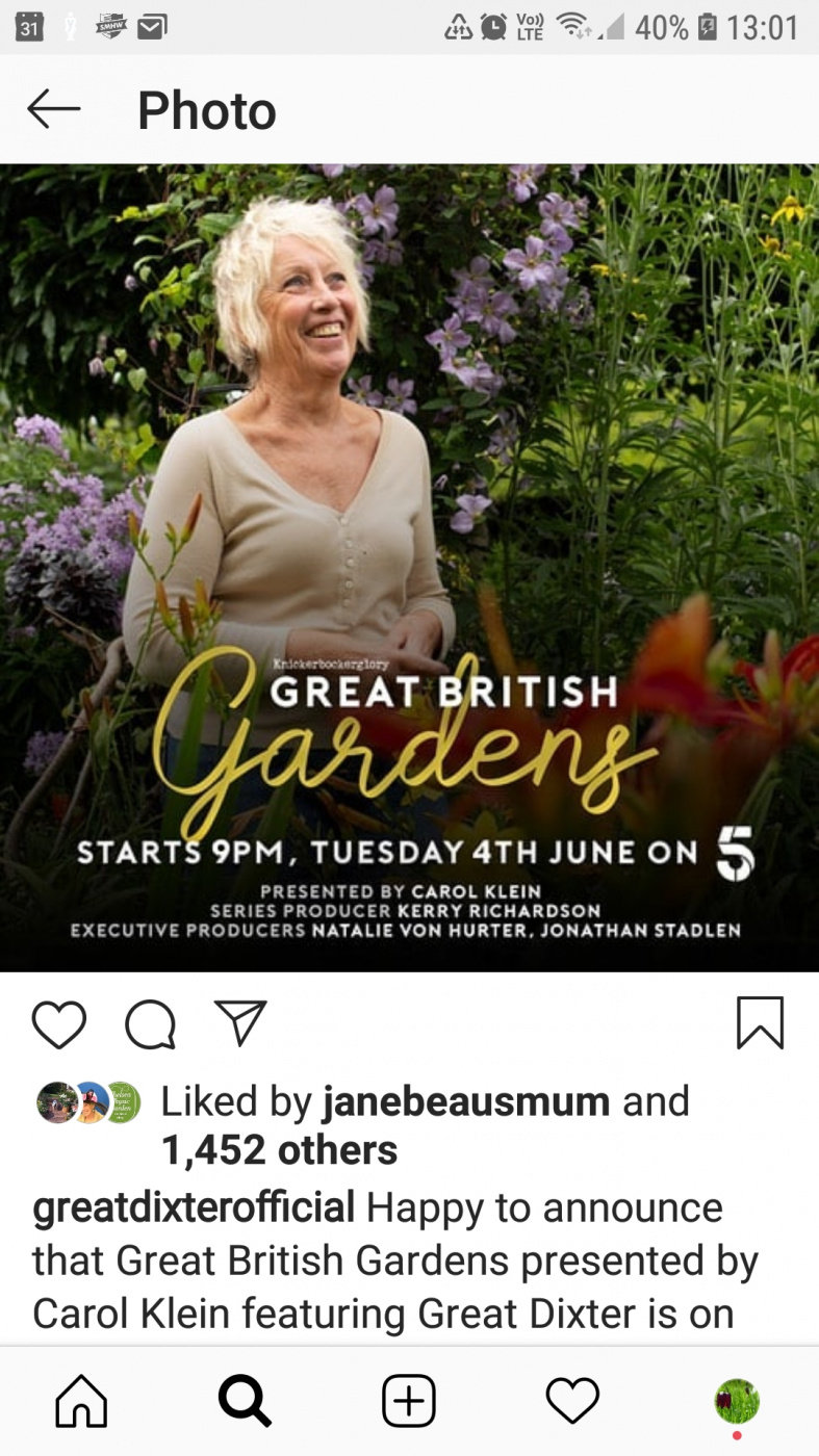 I am sorry if it was not clear, but where I got the information was actually from officially Great Dixter on Instagram. It does not give any other information about it, other then what I had previously told you. So I am sorry if it has caused any problems. I only know what it says and the title, no more and no less...… I personally will be patient and wait for any further information to follow, and just enjoy the programme and seeing Carol when it comes on the television. Kind regards.