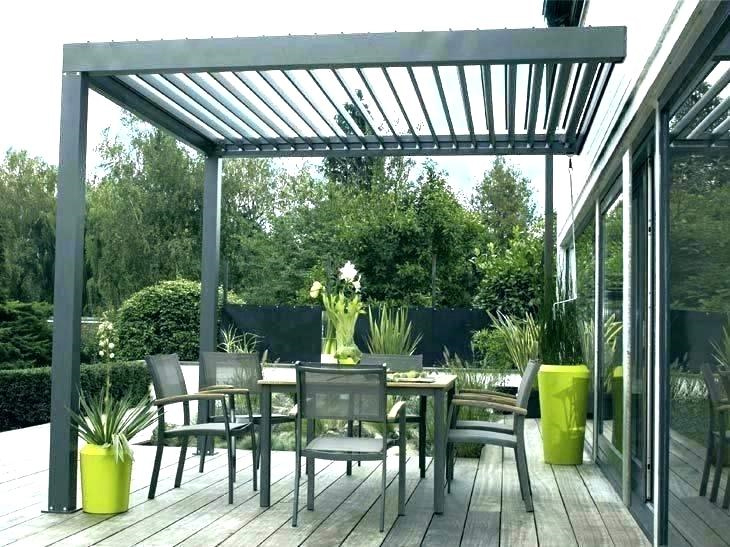 Another suggestion would be to build a wooden pergola coming out from the house and extending over your patio area - you would need it to come out at least 8 ft from the house. That would solve all your problems instantly (or at least in the two days it would take to build). Even the pergola on its own would do the trick but with plants growing up it and over it - job done.
