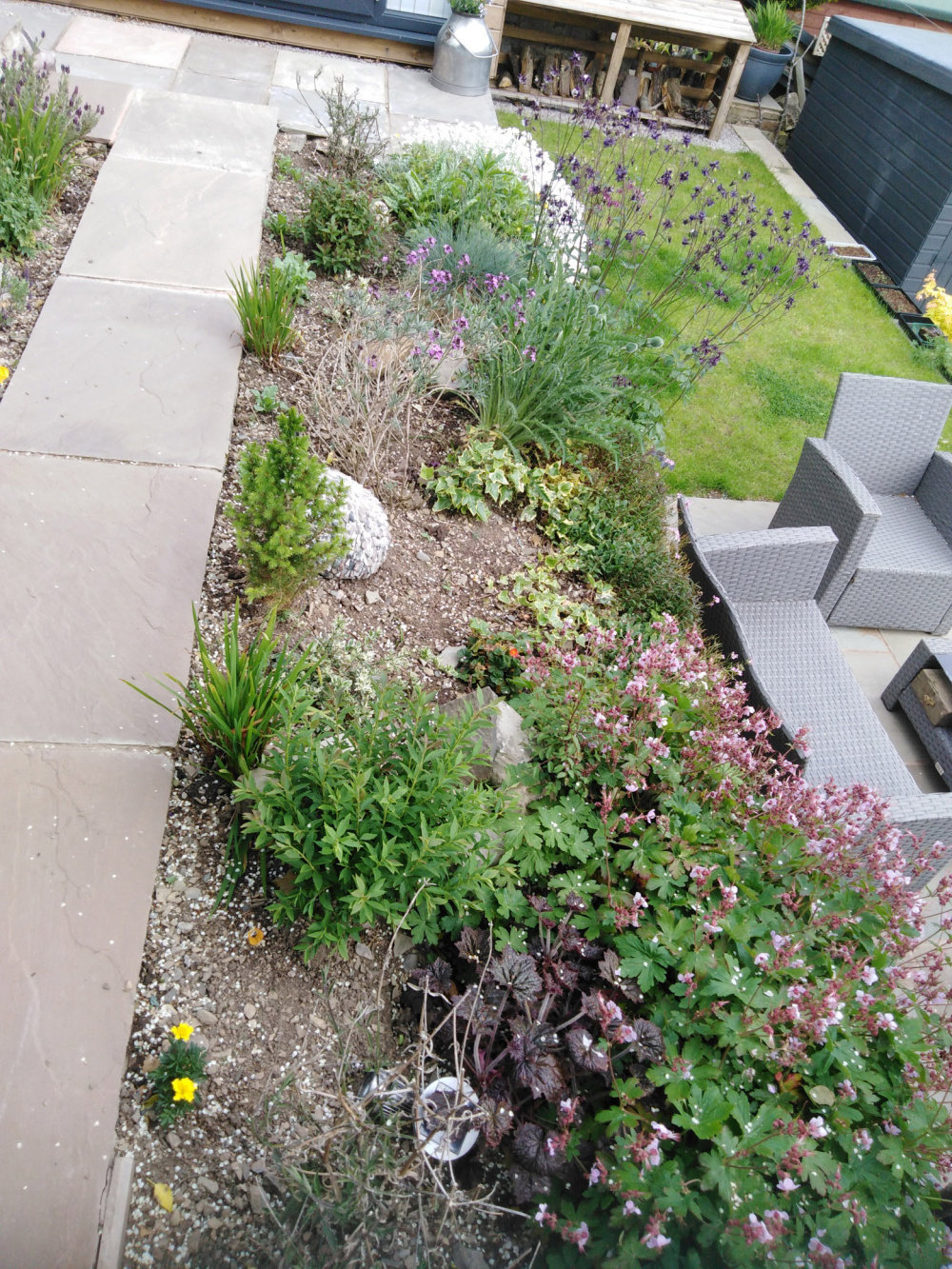 I have 2 small bed areas, the bottom one I have borrowed and saved plants, the top is the odd bought specimen but mainly what was planted by the previous owner. The top is more of an issue as the planting comes through wave after wave but I have no control over it and as you can see it gets rather wild. I've given it a chance to see if I can live with it as there are some nice things but I'm too frustrated with the random nature of the colors and form.