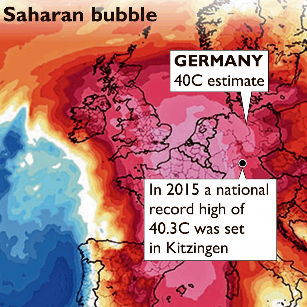 @raisingirl, I’m sure you are right, although it said in the press it’s going to get hot, humid and thundery with up to 30degC in London by end of next week as there is a ‘Saharan Plume’ due to hit Europe. I’m in the pink bit on/below the K in Kitzingen on this map and temps are forecast to get to 39 here - tho it changes so fast, who knows!