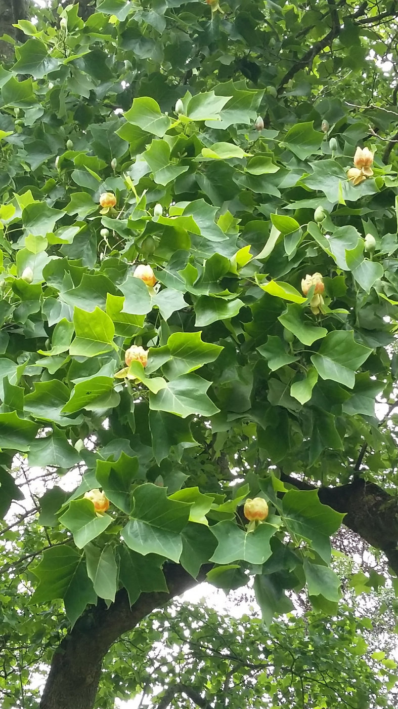 Forgot to post this picture - last summer's sun has had a dramatic effect on the Liriodendron in the park. It's covered in flower buds, for the first time in 13 years.