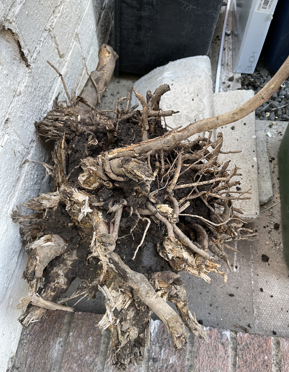 It is a lot easier to cut the roots out than trying to rock or pull, even with quite small ones left.