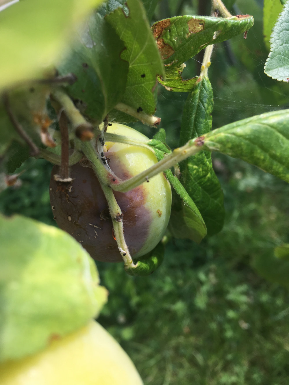 My dwarf Victoria plum has lots of tiny black bugs/eggs mainly on the leaves and many of the fruit have blobs of jelly substance on them and are going bad. I’ve been removing the bad ones. Here are a couple of not very good pictures. Can anyone let me know what’s going on and how to manage organically? Thanks! 0