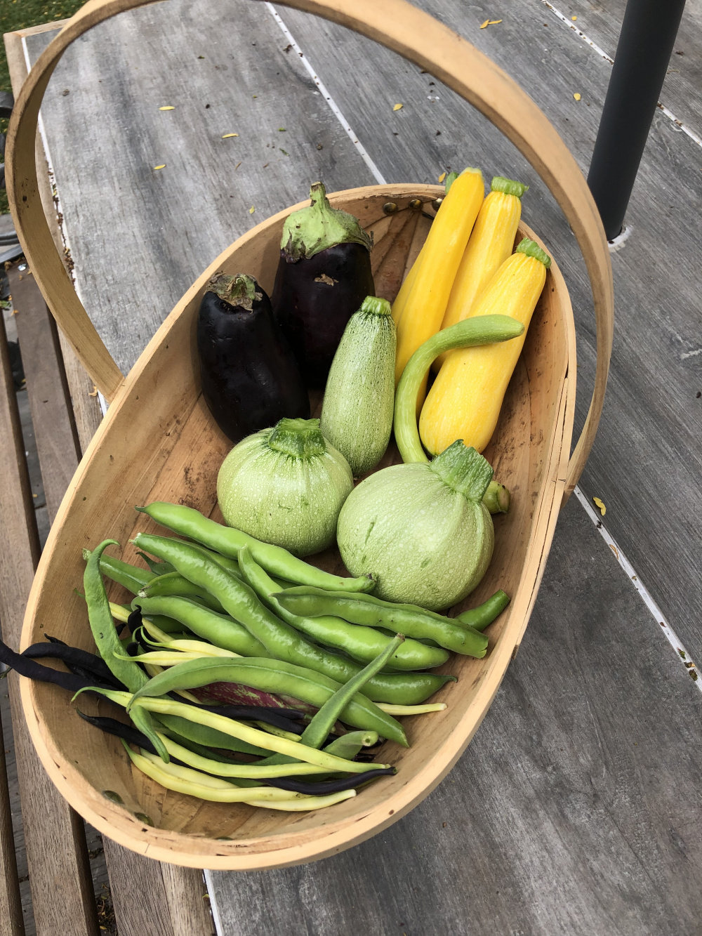 I’ve picked all the decent sized broad beans in case the plants start to die. Along with some other garden goodies. I think we’ll be having veggie curry for dinner.