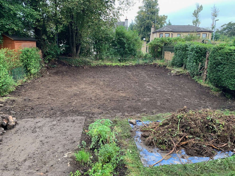 After a lot of hard work, we've cleared an ungodly amount of rubble, weeds and roots out of the ground and this is what we're left with: