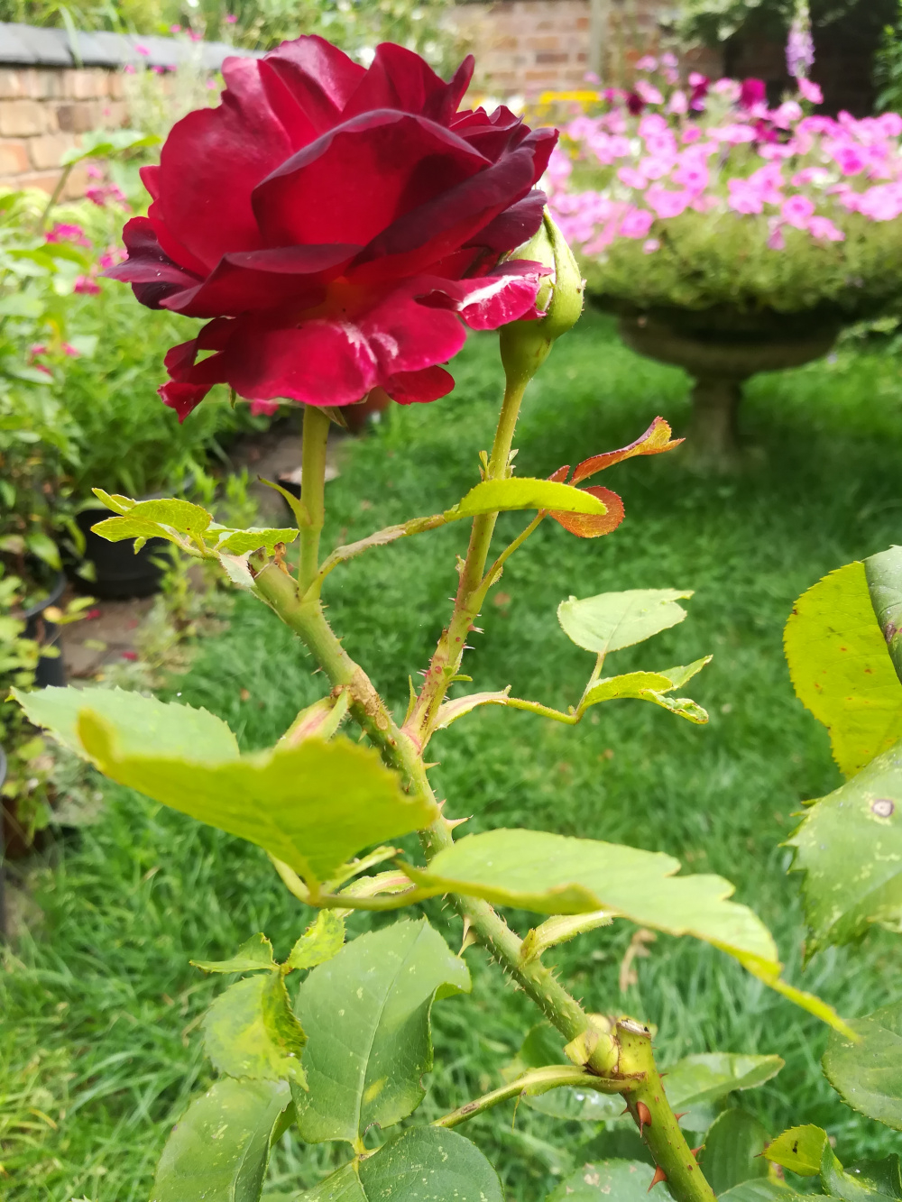 Munstead Wood can be slow to settle in. This spring and summer I have managed to plant out some of my roses whch had been in pots for 3 years waiting for us to get a bed prepared in this new, to us, garden. What with drought and heatwaves and poor soil it's taken a while to work over the soil and dig in plenty of manure.