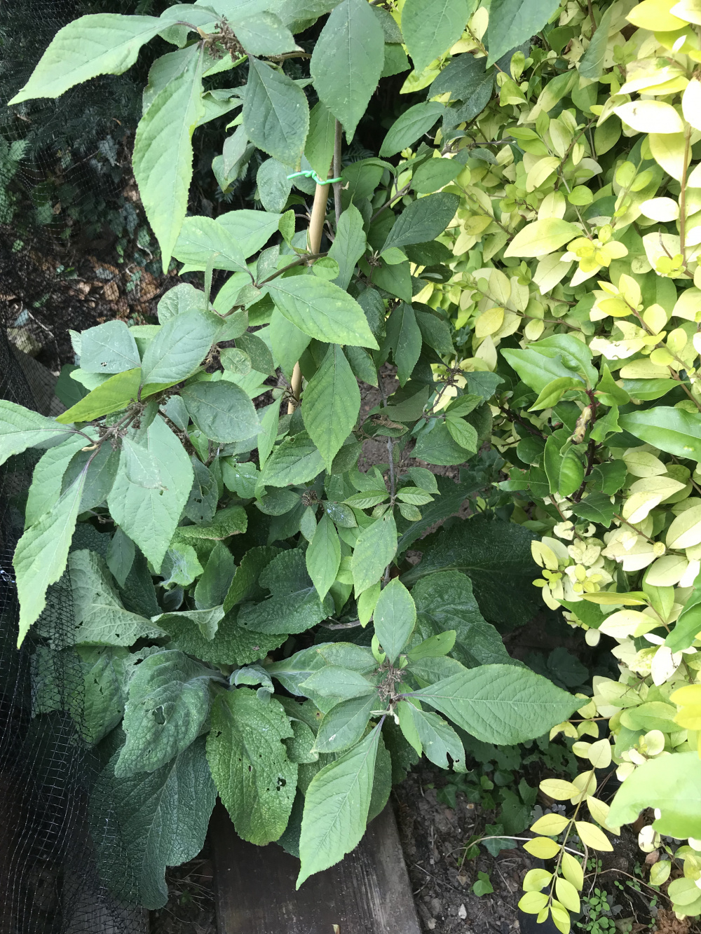 I agree with @philippa smith2 ... there’s been some sort of mix up. The original photo looks like a callicarpa .... the recent photos are definitely not the same plant ... the leaves and growth habit are very different ... the recent photo is one of the Malva family.