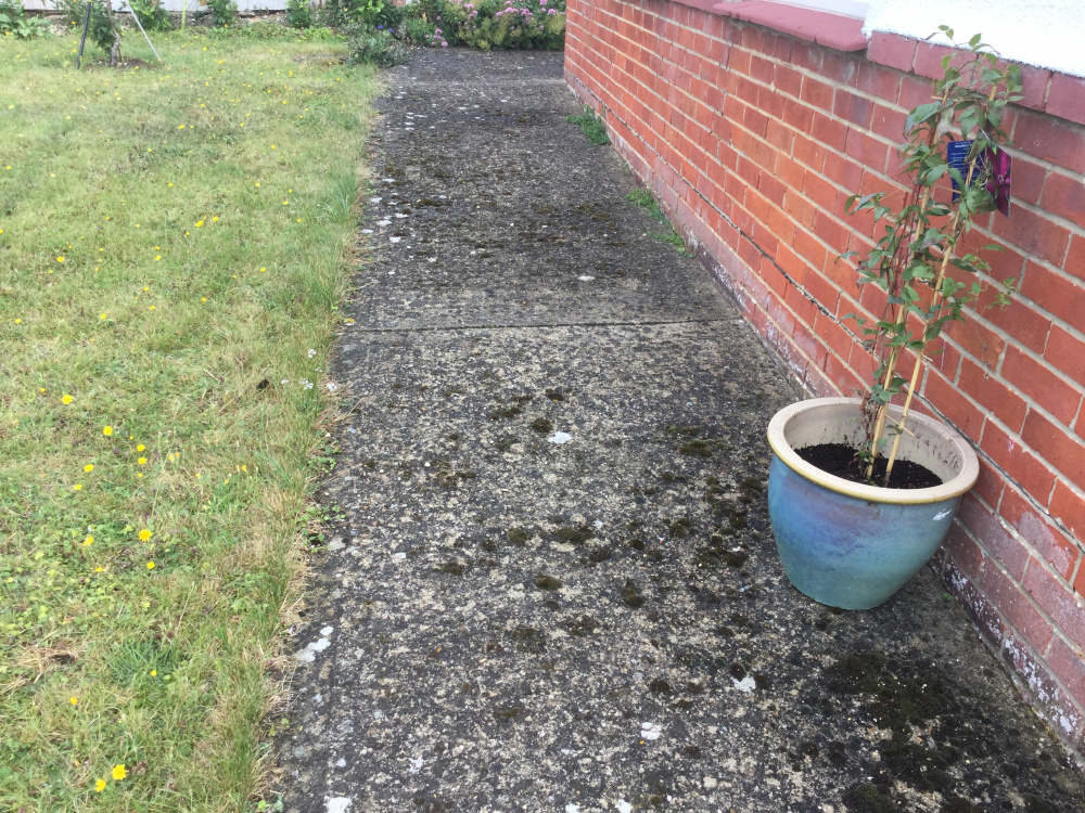 The DPC is nice and high as that is visible but what it does tell us is that the path has got quite a slope on it. Pots may look a bit drunk! No easy answer, sorry!