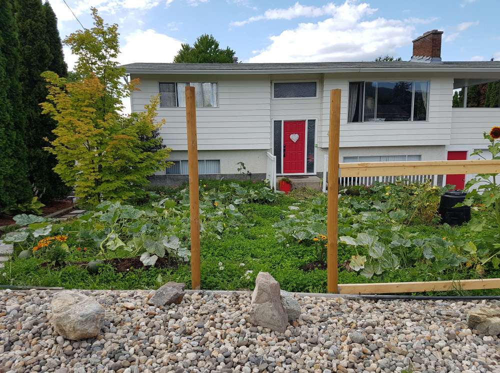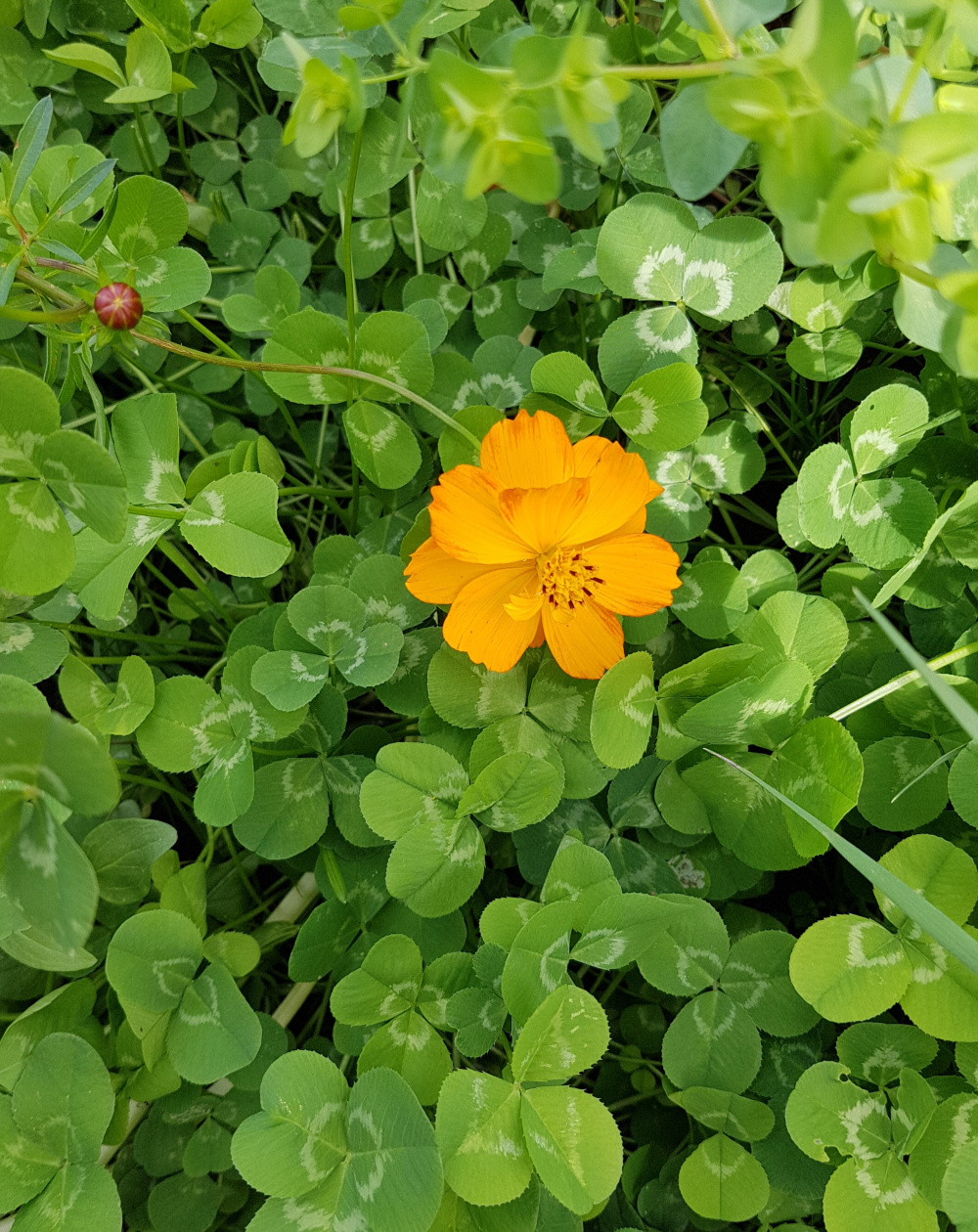 The garden looks lovely, I like vegetables in front gardens. But it will be hard to maintain, so much harder than the lawn. The clover won't suppress all weed but it will suppress some flowers and vegetable plants.