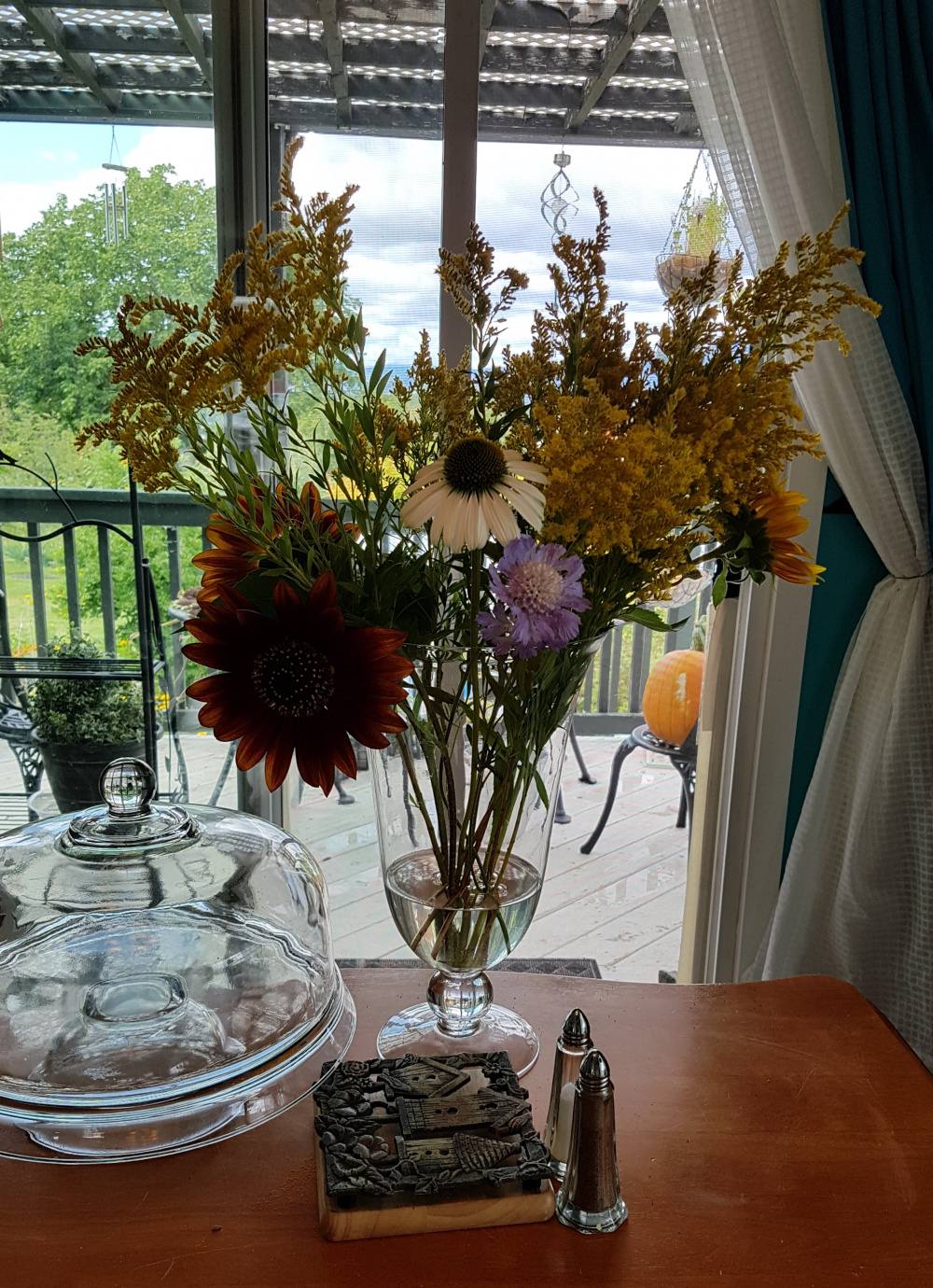 I purchased White Blazing star. It has come in bright pink/purple. As I go along, I move certain colors into other beds. There is Nicotiana in all different colors popping up all over. I found goldenrod growing along the side of the road and after research, pulled some out to grow for next year. I have some in a pot and some as a bouquet. It looks amazing when it has gone to seed. I think it will go really well planted with the coneflower. The shape will really pop. I'm thinking it will go well in the front garden where it's too dry for anything else.
