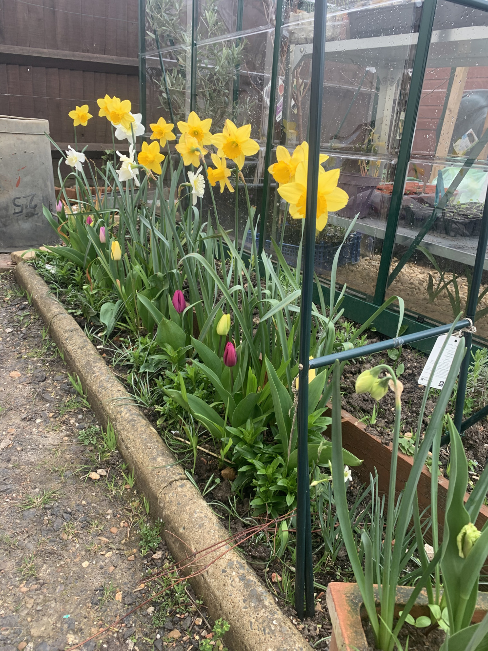 Apologies for digging up an old thread but just thought I'd share a photo I took about a month ago with the daffodils and the tulips just coming out. The bed looks really nice. The tulips are now slowly dying off but the Sweet Williams have grown tall & I'm looking forward to seeing what brings next.