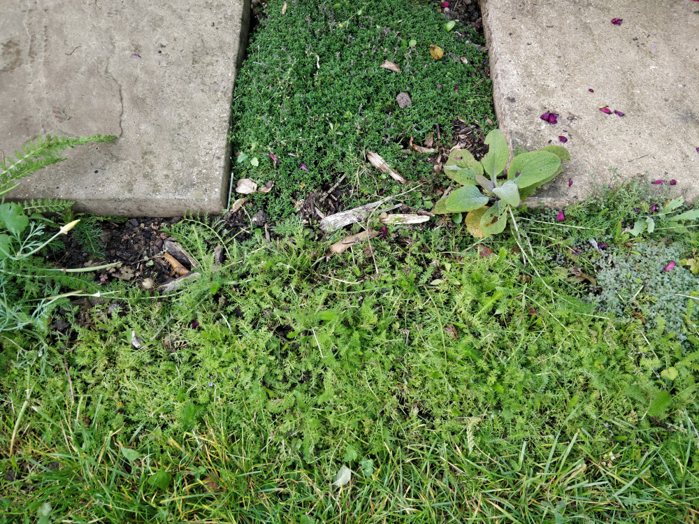That's a lovely front garden by the way. What's in the pot in the top centre of the picture? A bit late to mention this, but I bought seeds from meadowmania for my strip. It germinates very easily. Good luck with your lawn! Do you have other plants in mind, such as clover? I'm always looking for inspiration. One thing I'm still mulling over is whether to invite creeping cinquefoil into the lawn. It looks lovely.