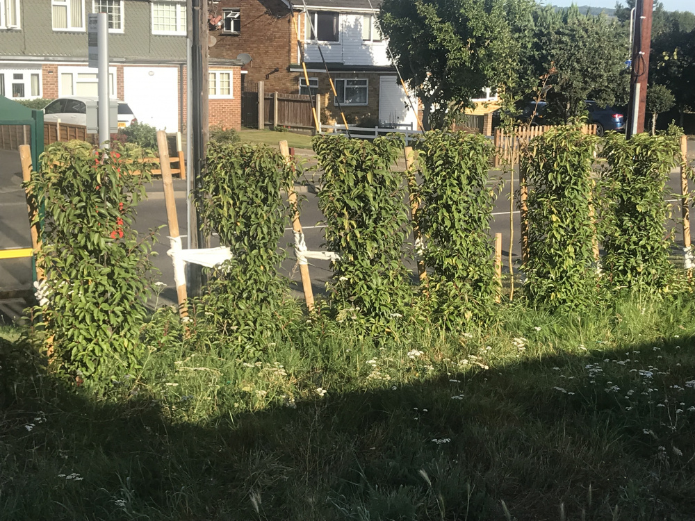 Hi, back in October last year we planted 40 6’ Portuguese laurels. They were bare root and I quickly saw that the wind was rocking them so in Nov/Dec I staked and tied them against the prevailing wind. Since then they have been cut back and have grown a bit but I suspect most of the growth has been underground.
