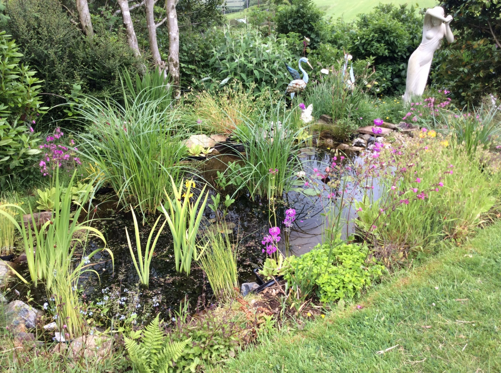Ours in it’s early stage. August 2014 And 2 years later. June 16. make sure you get a nice lot of plants around the edges, creatures like places to hide in. Dragonfly nymphs need to climb up reeds and grasses to dry out before flying away.