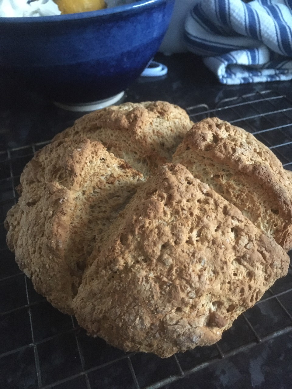 The kitchen smells good ... I've just taken some wholemeal soda bread out of the oven to go with the bacon and pea soup that's simmering in the crockpot.