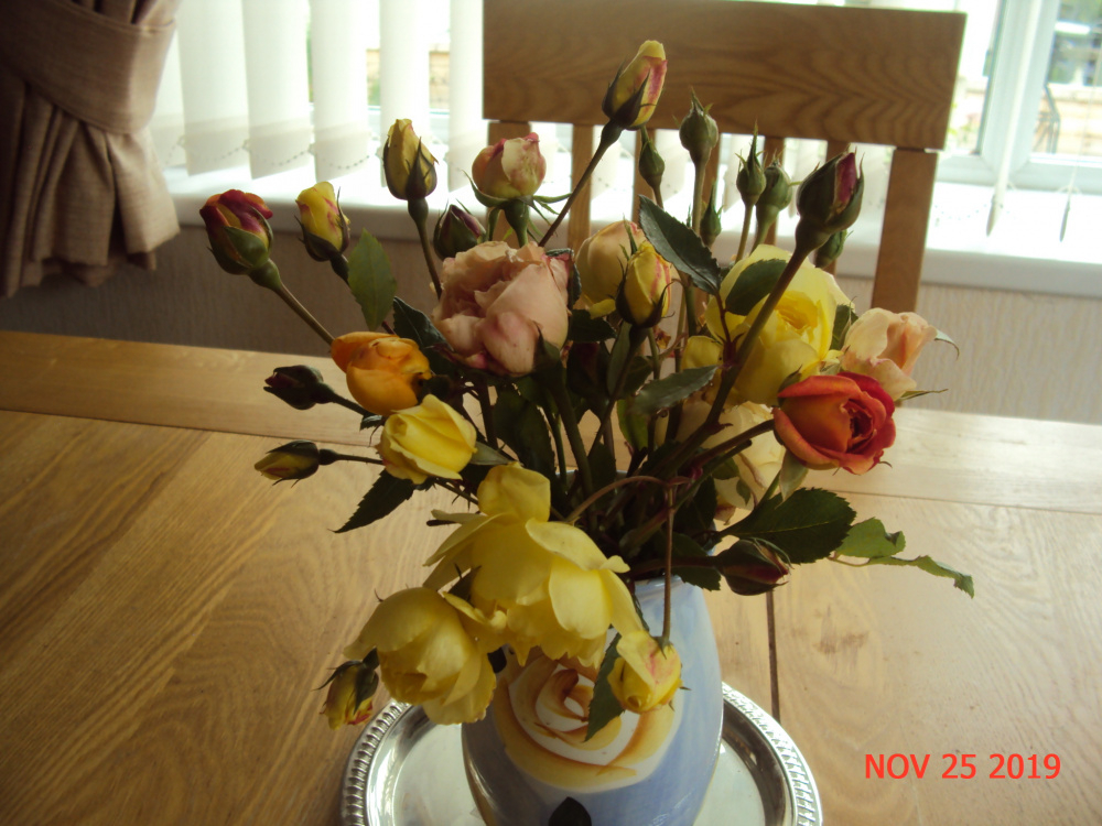 ....if you have lots of varieties especially Austins, then you will always get some late blooms like these... it's a pity you don't want orange or yellow because Lady of Shalott and Vanessa Bell are two of the best... they open out beautifully in a vase...