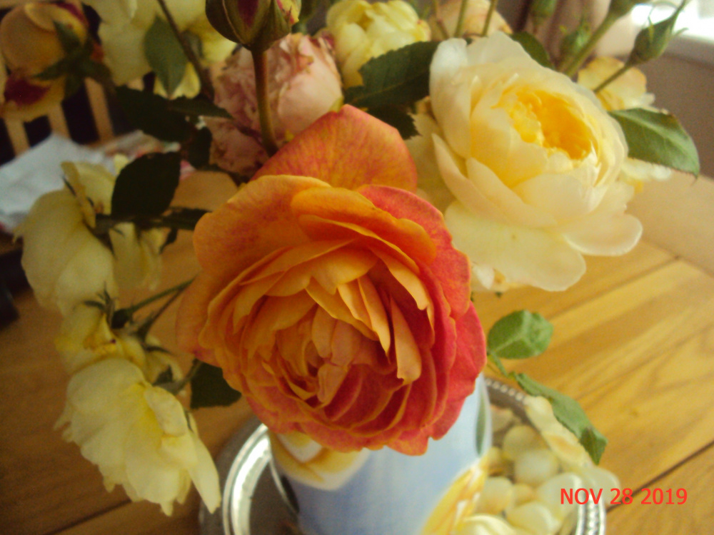 @valerieroberts … Valerie... the dark rose in the mixed group is 'Munstead Wood'... and last one on its own is 'Thomas a Becket'... this rose would last 10 days in a vase if picked just as the buds start to open... it opens beautifully in a vase ...and has a citrus scent... I think I took that picture on Dec. 25 one year..